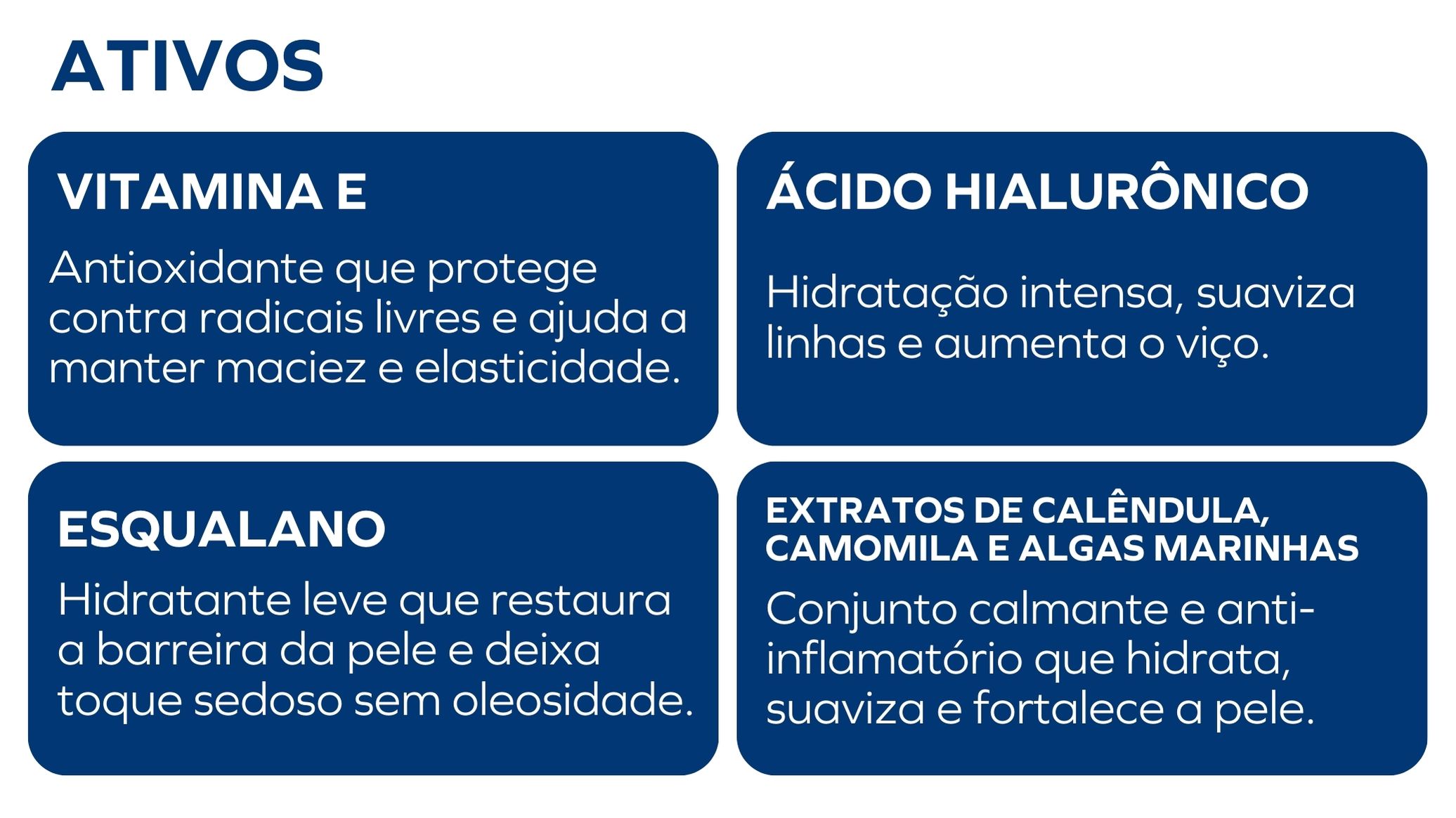 ✓ Promove hidratação sem pesar a pele